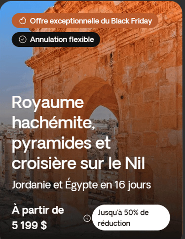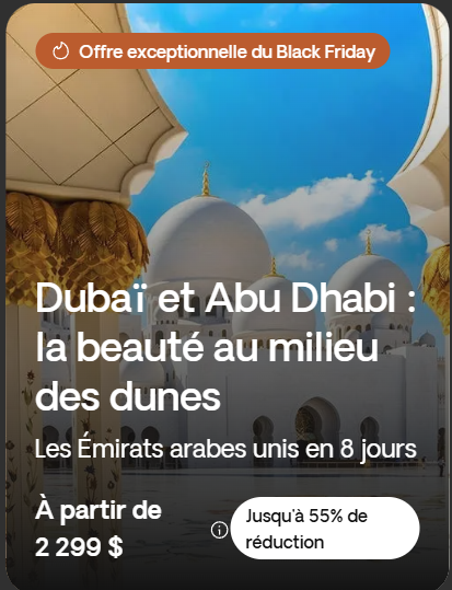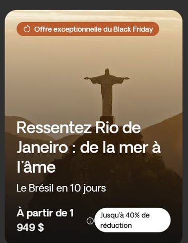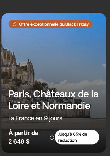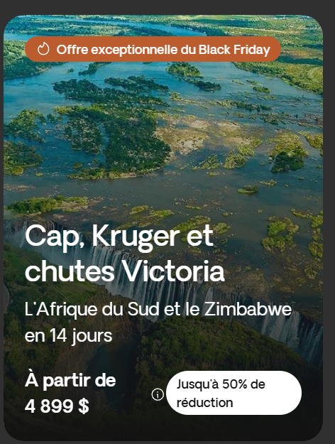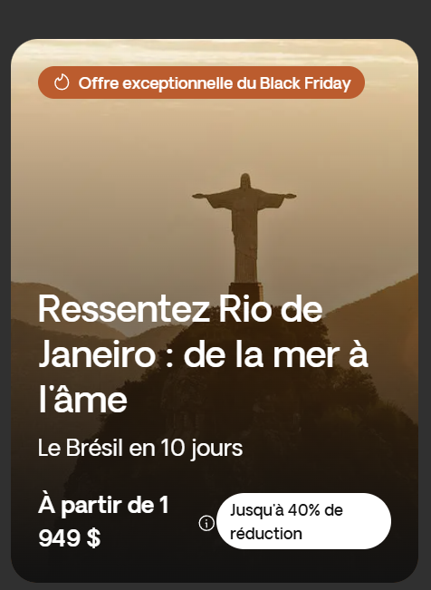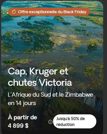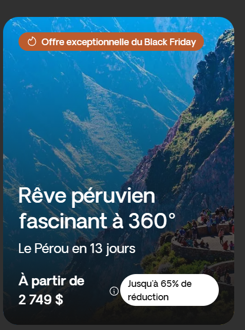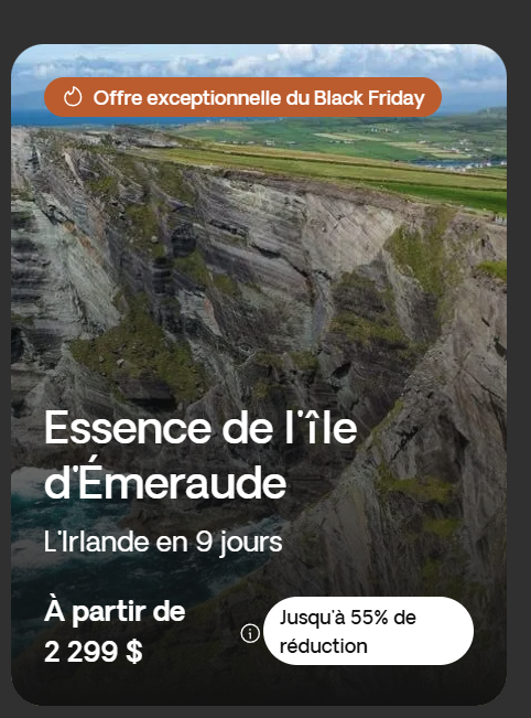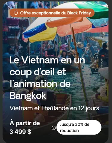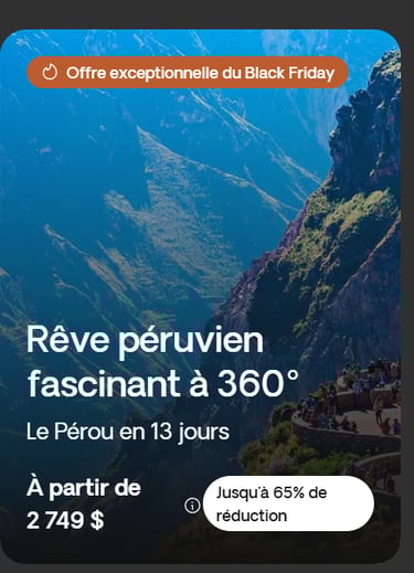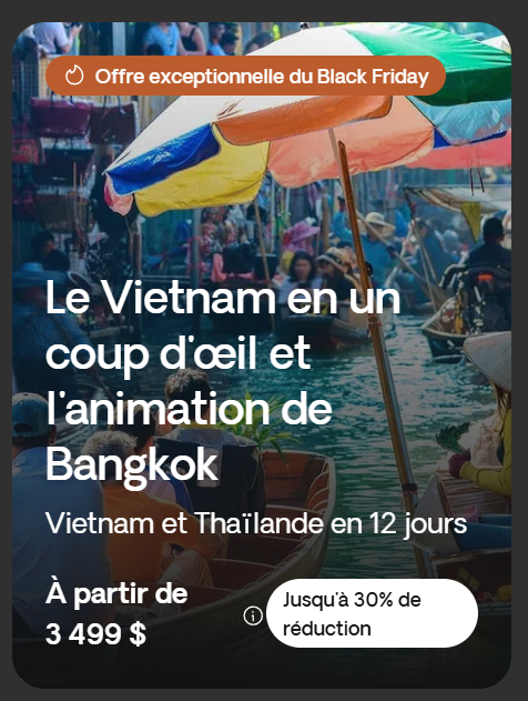 Les Supers Offres sont là ! Découvrez une sélection exclusive de 12 voyages coups de cœur à prix exceptionnel. Des destinations de rêve, des rabais spectaculaires… et une occasion à ne pas manquer !