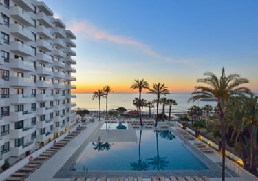 Le Sunset Beach Club est un appart-hôtel bien connu de Benalmádena, particulièrement apprécié pour les séjours de moyenne et de longue durée. Situé en bord de mer, il offre un environnement complet avec de nombreux services sur place, tout en permettant de profiter facilement de la promenade maritime et de la plage.